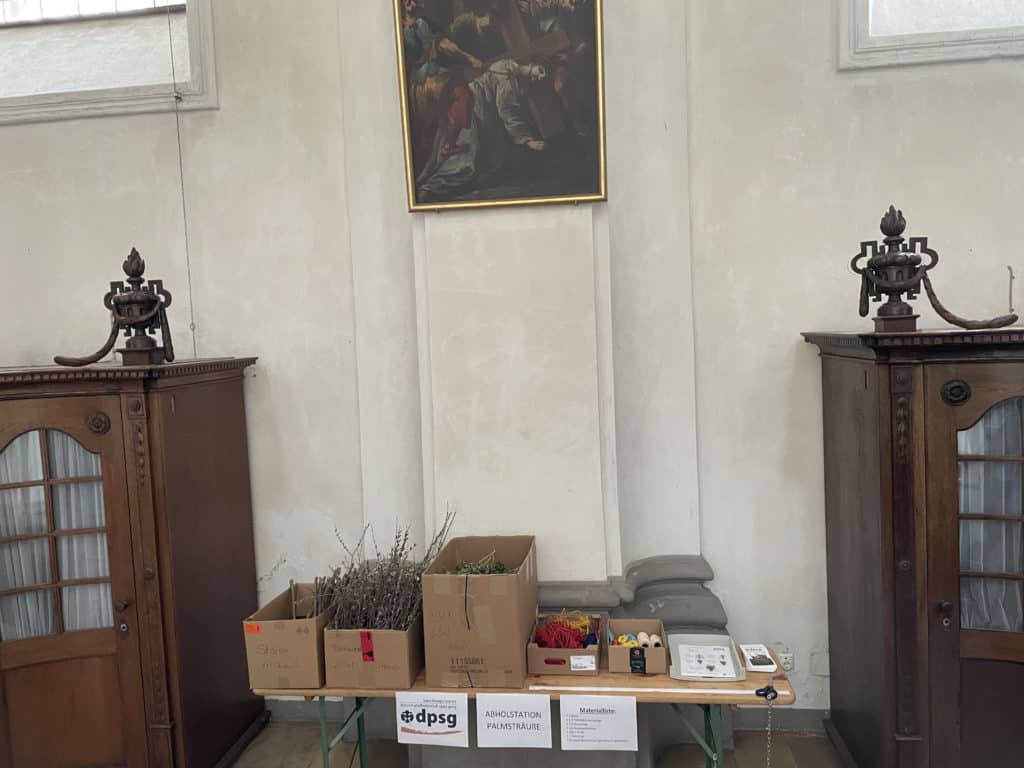 Die Anleitung für die Palmsträuße und die verschiedenen Materialien wurden von uns, für euch in den Ellwanger Kirchen bereitgelegt. Unsere Leiter haben jeden Tag fleißig die Stationen aufgefüllt, sodass immer genug Material für euch da war und ihr schließlich den Palmsonntag auch dieses Jahr mit Palmsträußen feiern konntet.